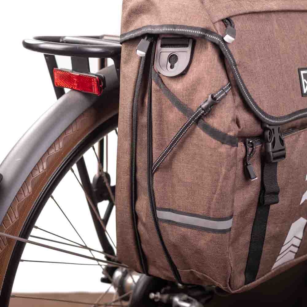 Deze enkele fietstas XL 1200 is dankzij de afneembare (en verstelbare) schouderband tevens te gebruiken als schoudertas. Naast dit meeneemgemak zijn er nog veel andere details die deze veelzijdige tas voor velen de moeite waard maken.