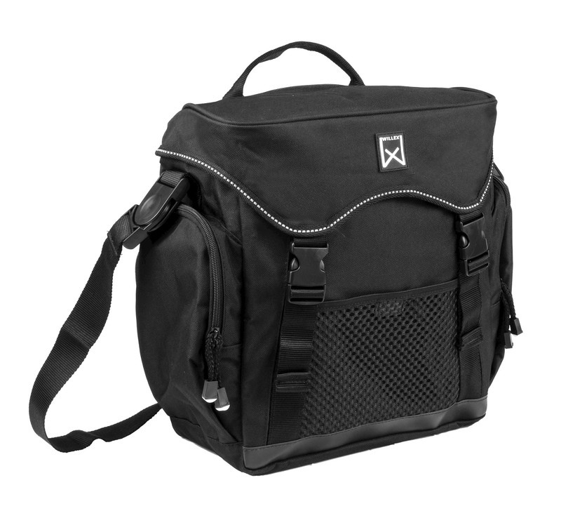 Een compacte en praktische pakaftas en schoudertas van het Belgische merk Willex. De enkele fietstas heeft een inhoud van 17 liter en wordt bevestigd met de klemhaken van Willex. De tas heeft verschillende praktische opbergmogelijkheden en wordt geleverd met een afneembare schouderband en een losse regenhoes.