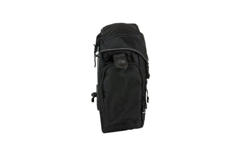 De tas heeft een ruim hoofdvak, met daarin een klein ritsvakje. Het hoofdvak wordt waterproof afgesloten met een binnenhoes met aansnoerkoord, met daar overheen een klep met klikgespen. Op de voorkant van de tas zit een opbergvakje van gaas met een klittenbandsluiting, en aan beide zijkanten zitten handige ritsvakken voor het opbergen van kleine spullen. Ook bovenin, in de klep van de tas, zit een ritsvak. Deze enkele fietstas is dankzij de afneembare en verstelbare schouderband ook te gebruiken als schoudertas. U bevestigt de schouderband met klikgespen aan de tas.