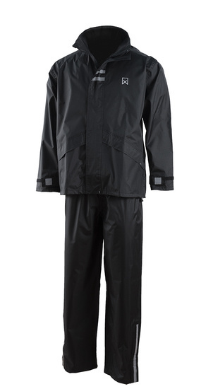 Dit Willex regenpak in de kleur zwart is een hoge kwaliteit regenpak met opvouwbare en verstelbare capuchon. Het pak is ademend, wind- en waterdicht en geleverd met een handige opbergtas.