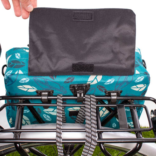 Deze enkele fietstas in een voordelige prijscategorie heeft moderne klemhaken, waarop Willex met succes patent heeft aangevraagd. Deze haken bevestigen de shopper solide aan de bagagedrager en zijn bovendien netjes weg te werken achter een flap.