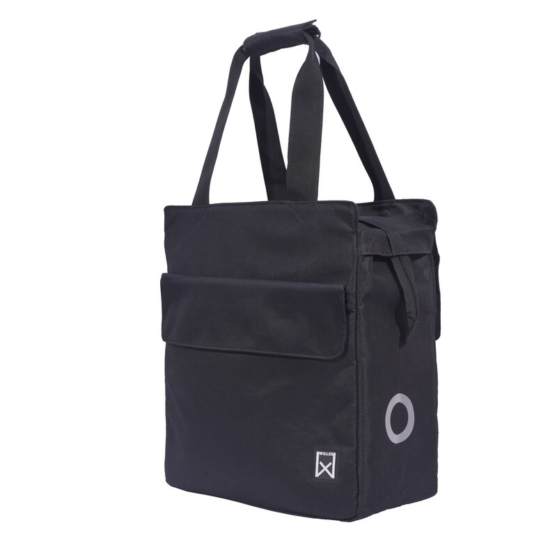 Deze zwarte Smart Shopper van Willex is gemaakt van waterafstotend polyester en heeft een klassieke uitstraling. De enkele fietstas heeft een inhoud van 16 liter en is voorzien van bodemvoetjes, reflectie en gemakkelijke bevestigingshaken.