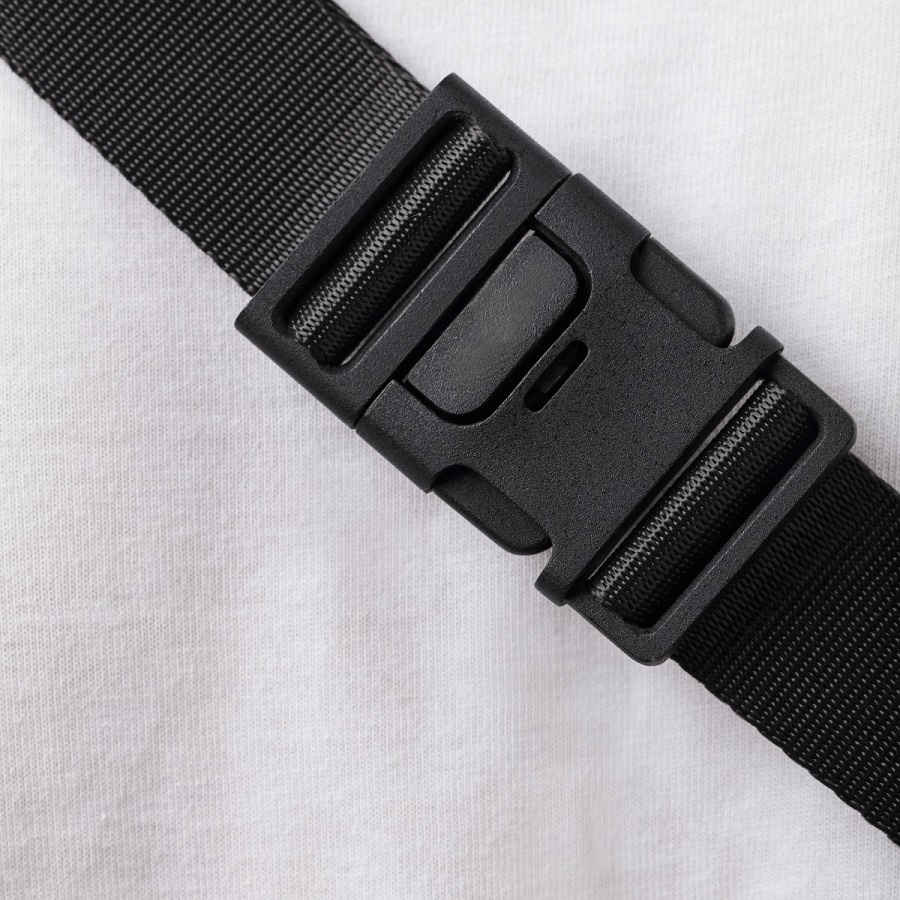 De heupband is verstelbaar om de tas passend te maken, en sluit met een 3-punts veiligheidsgesp. De klikgesp gaat open wanneer drie knoppen tegelijkertijd worden ingedrukt. Dankzij de lengte van de heupband kunt u de tas ook als sling bag schuin over uw schouder dragen. De Bumbag is licht van gewicht (ca. 220 gram). U draagt onderweg dus geen onnodige ballast met u mee.