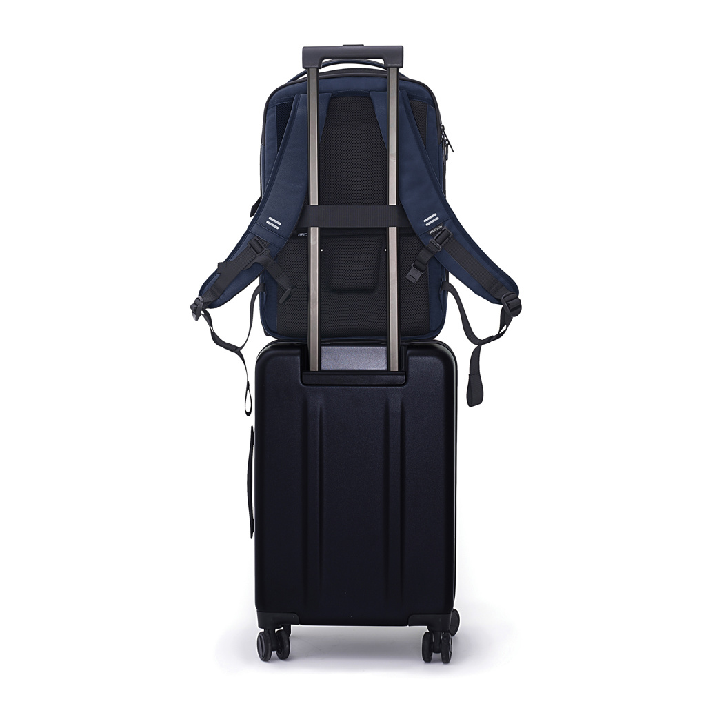 Het achterste grote vak van de rugtas is gevoerd en biedt ruimte aan een 16″ laptop. Het vak heeft een waterdichte ritssluiting om uw professionele spullen te beschermen. In het rugpand van de tas zit een extra ritsvak dat RFID-beschermd is, tegen skimmen. Perfect voor het opbergen van persoonlijke documenten, zoals een paspoort of pasjes.