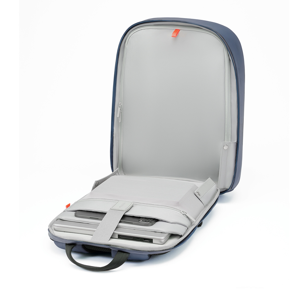De rugtas is gemaakt van waterafstotend, gerecycled materiaal en heeft een waterdichte YKK-ritssluiting. Het anti-diefstal ontwerp met de verborgen en RFID-beschermde vakken en verborgen ritsen is aangevuld met verbeterde functies voor de veiligheid. De tas heeft een zelfsluitende metalen ritstrekker en een verborgen vakje voor het opbergen van een bluetooth tracker. Zo kunt u uw tas altijd traceren als deze kwijtraakt of gestolen wordt.