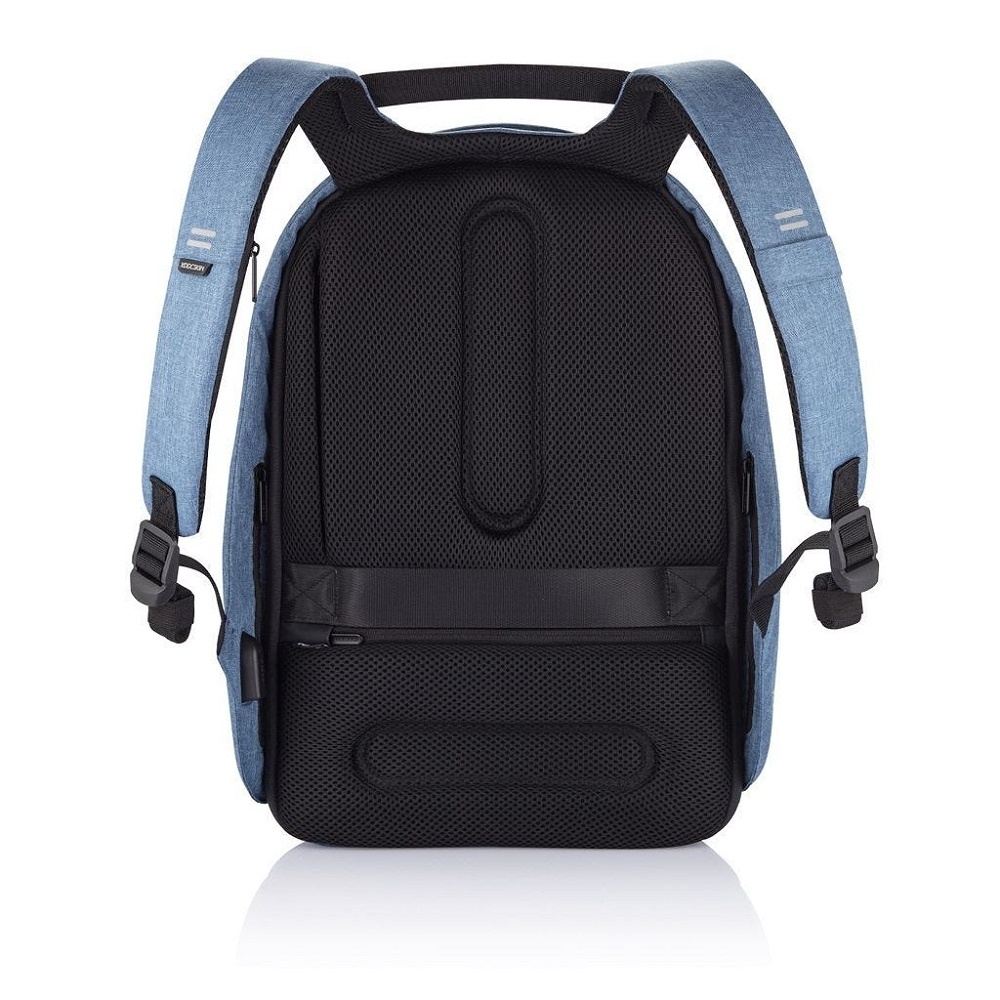 De Bobby is gemaakt van waterafstotend en shockproof materiaal, zodat uw spullen tegen een stootje kunnen. Deze blauwe rugtas is bovendien gemaakt van snijbestendig materiaal. Uw spullen zitten dus veilig op uw rug. Of aan een trolley. Aan de achterkant van de tas zit namelijk een bagageriem, welke u over een trolley kunt plaatsen. Zo neemt u de tas ook makkelijk mee op reis! De ritsen zijn geschikt voor een hangslotje (niet inbegrepen), zodat u de inhoud van uw tas nog eens extra kunt beveiligen.