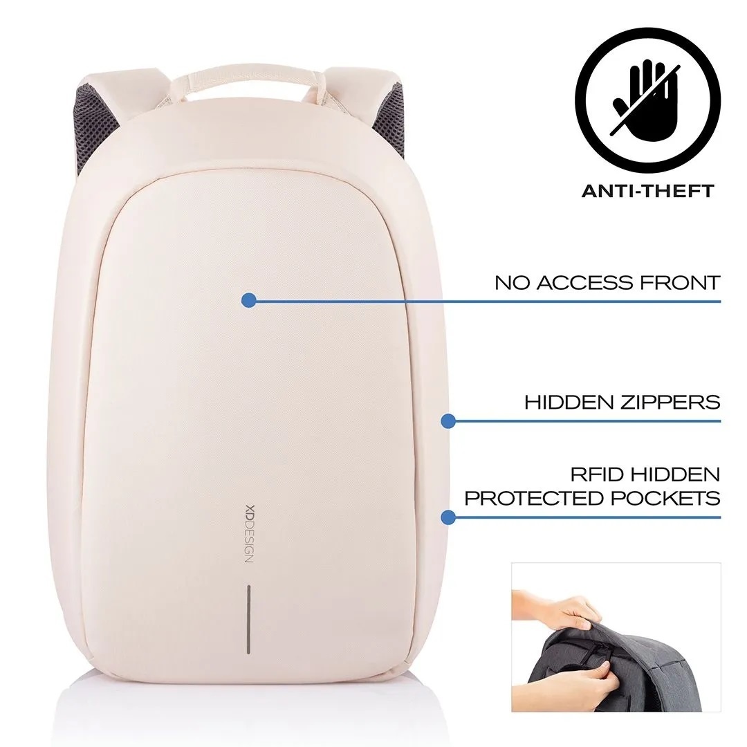 Met deze rugzak in een zomerse zachtroze kleur van XD Design bent u er zeker van dat uw spullen veilig zijn. Deze anti-diefstaltas is zo ontworpen dat een ander lastig toegang heeft tot uw spullen. Zo zit de rits van deze tas aan de achterkant op uw rug en heeft de tas verborgen ritsen en vakken. En dat is nog maar een tipje van de sluier van alle handige slimmigheidjes!