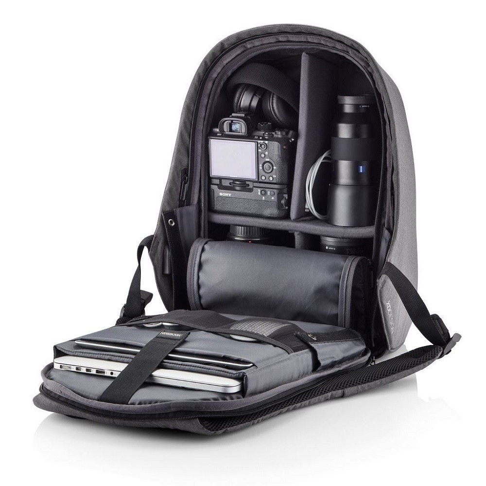 Deze rugtas is te completeren met de Bobby regenhoes en de Bobby Hero Internal Dividers. Deze vakverstellers maken het mogelijk om verschillende vakken te creëren in uw Bobby Hero voor nóg meer overzichtelijkheid (zie foto 10). Deze vakverstellers zijn niet inbegrepen en kunt u apart bestellen (zie gerelateerde producten).