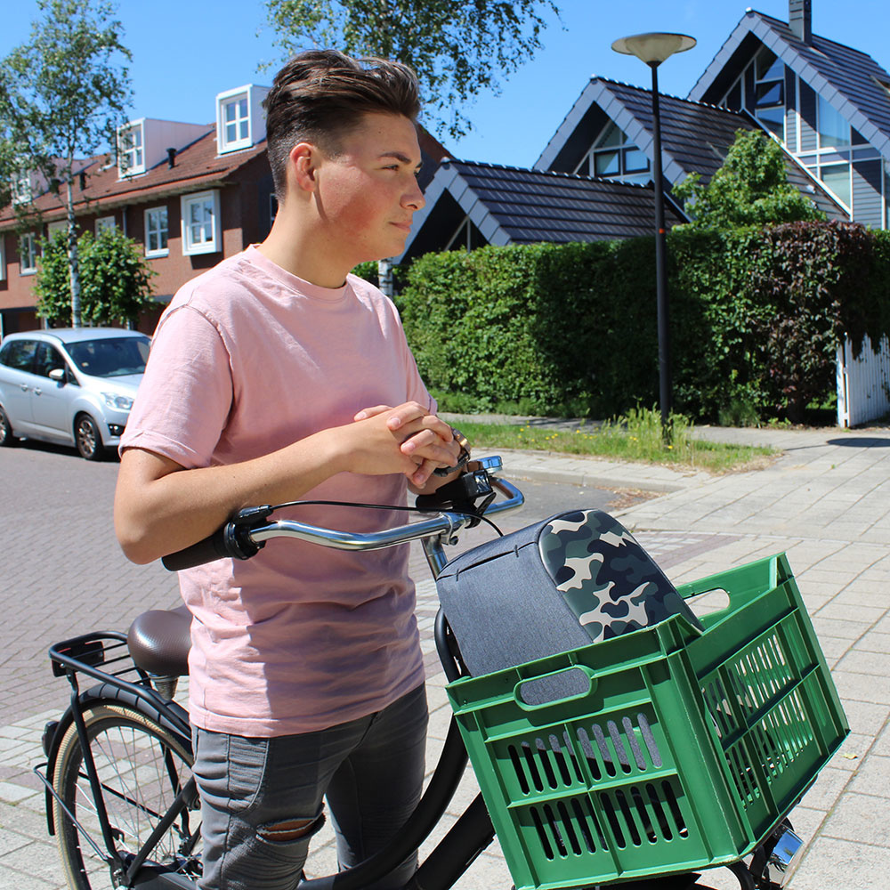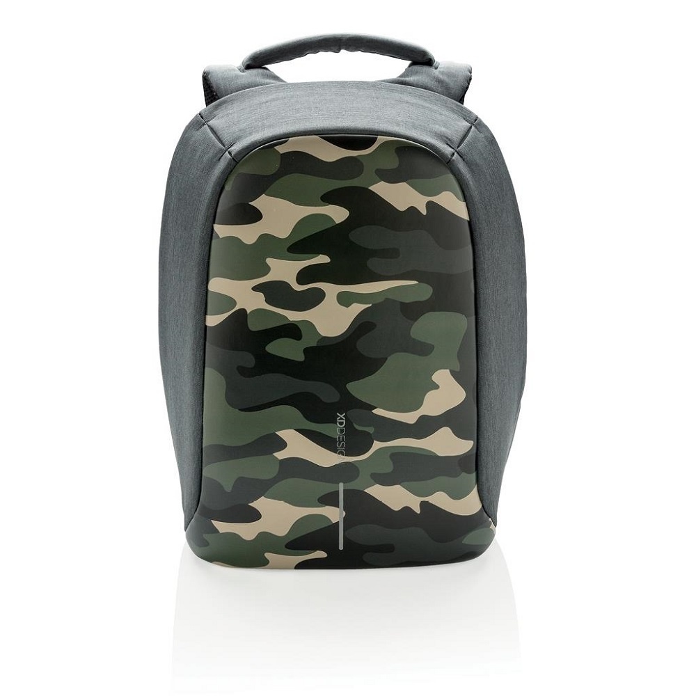 Op sommige foto's wijkt de kleur van de tas af van de werkelijk kleur. Deze Bobby Camouflage Green is donkergrijs en heeft een voorkant met camouflage print.