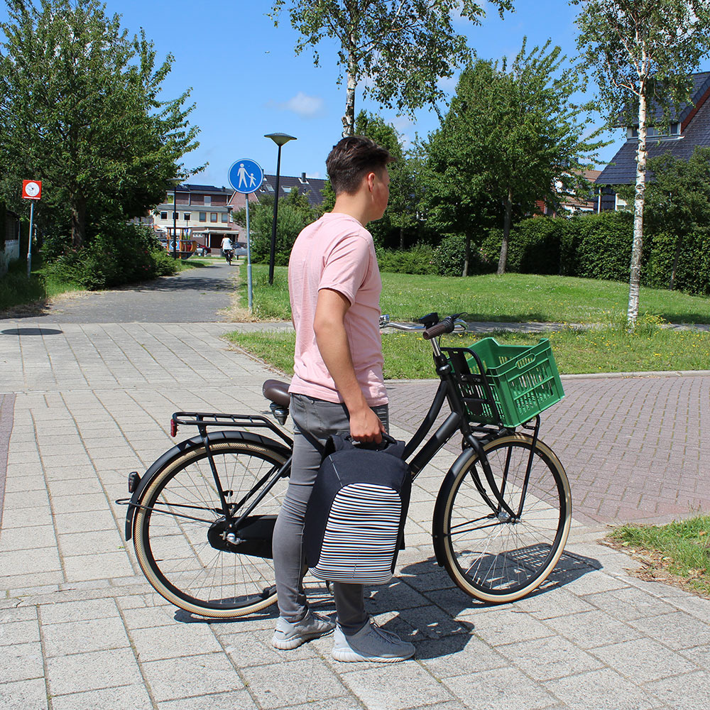 Aan beide zijden van het hoofdvak, aan de achterkant van de tas, zitten nog twee opbergvakken met rits. U heeft makkelijk toegang tot deze vakken en kunt hier bijvoorbeeld uw telefoon, portemonnee of sleutels in kwijt. Ook op het rugpand van de tas vindt u een extra ritsvak. De schouderbanden zijn beide voorzien van blinde opbergvakjes. Handig voor bijvoorbeeld een pinpas of OV-chipkaart. Ook vindt u op de schouderbanden, zijkant en op de voorkant reflecterende detials, zodat u in het donker beter zichtbaar bent op de weg.