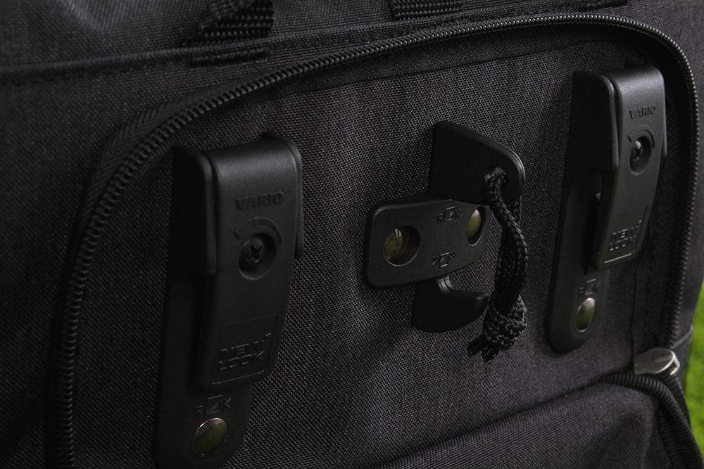De tas sluit u af met een rolsluiting. U rolt de tas dicht en kunt deze op vier verschillende punten vast maken met de haaksluiting. De rolsluiting maakt het mogelijk om de tas te verstellen en bijvoorbeeld compact op te rollen als u minder bagage heeft.
