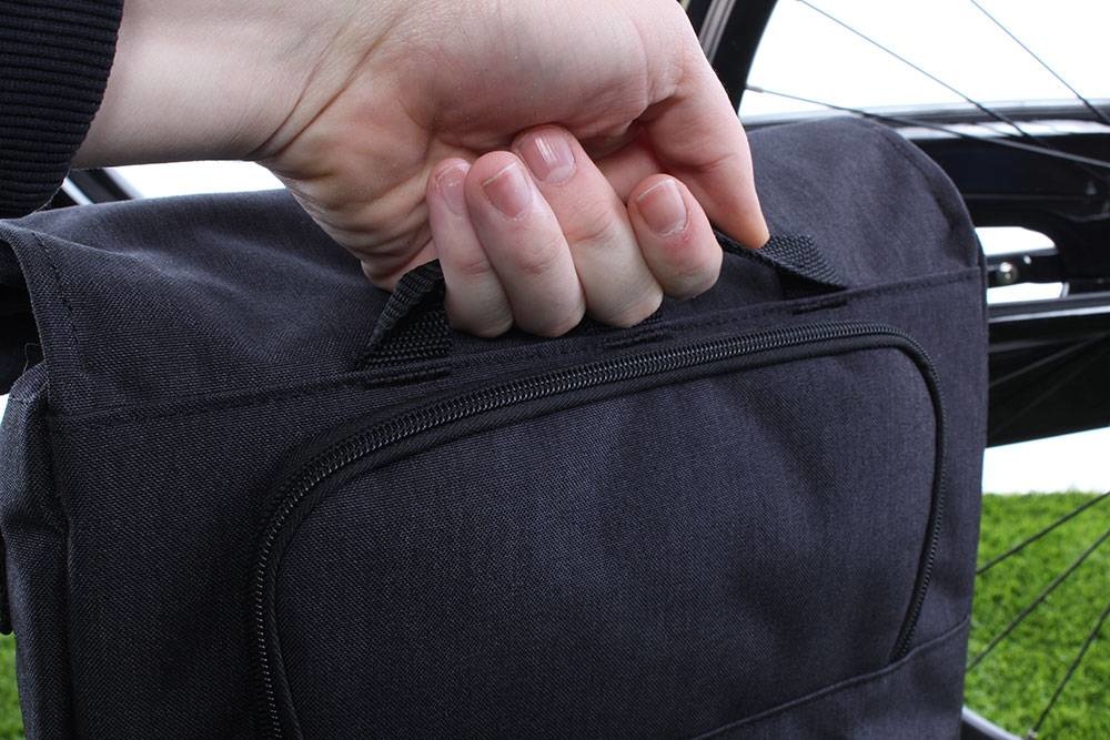 Deze pakaftas wordt geleverd met een afneembare, verstelbare schouderband. Hiermee kunt u de tas makkelijk omtoveren tot schoudertas. De verstelbare fietshaken waarmee u de tas eenvoudig op uw fiets bevestigd, zitten achter een ritsvak. Voor ideaal draagcomfort rits u dit vak dicht.