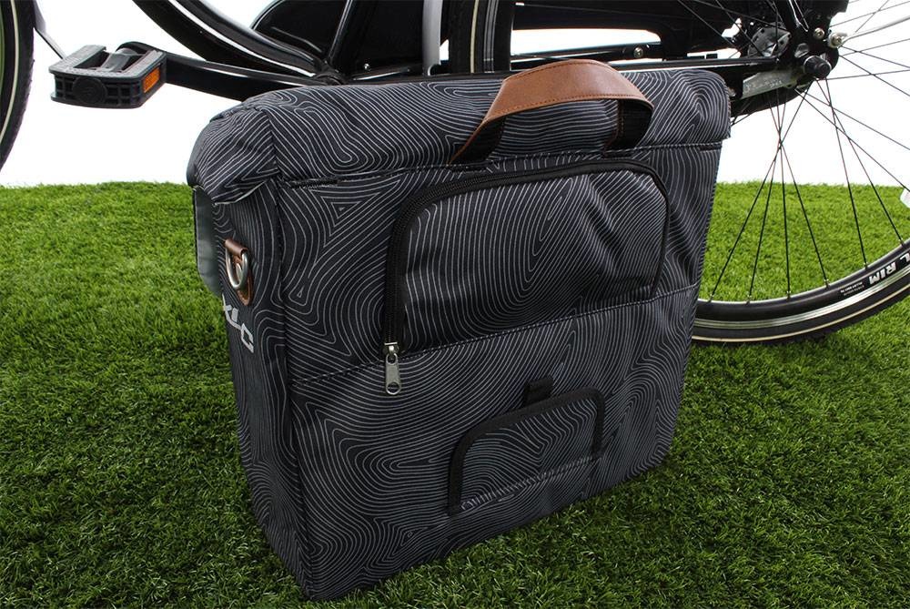 De grijze variant van deze XLC Lux met vingerafdrukprint oogt sportief en is voorzien van bruine details en reflectie. In het hoofdvak van de tas zijn drie binnenvakken aanwezig, zodat u uw spullen overzichtelijk kunt opbergen. Daarnaast is er aan de voorkant van de tas nog een extra vak. Deze sluit u met klittenband.